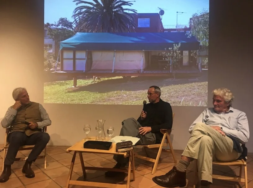 Richard Leplastrier and Peter Stutchbury, at MOA Ljubljana Museum of Art and Architecture, with Chair Matej Gasperic, (GMMC 1011), who organised the fantastic Immersive Architecture Master Class 2019 and associated lectures and tours in Slovenia.